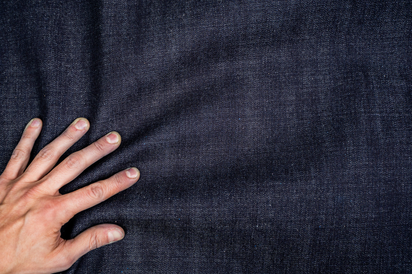 Gefärbt mit Naturindigo, besitzt der Denim eine authentische, intensive Farbwirkung, die sich mit der Zeit zu einer individuellen Patina entwickelt. Im Neuzustand wirkt der Stoff fest und griffig, gewinnt jedoch beim Tragen an Geschmeidigkeit, ohne seine markante Struktur zu verlieren.