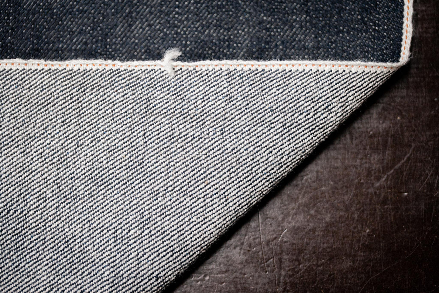 Dieser 16 oz Selvage Denim wird von Nihon Menpu in Ibara gefertigt und besticht durch seine leichte Struktur und die etwas rauere Oberfläche. Trotz der spürbaren Robustheit wirkt der Stoff lebendig und authentisch, mit einer klassischen Indigo-Färbung, die den Denim zeitlos wirken lässt.