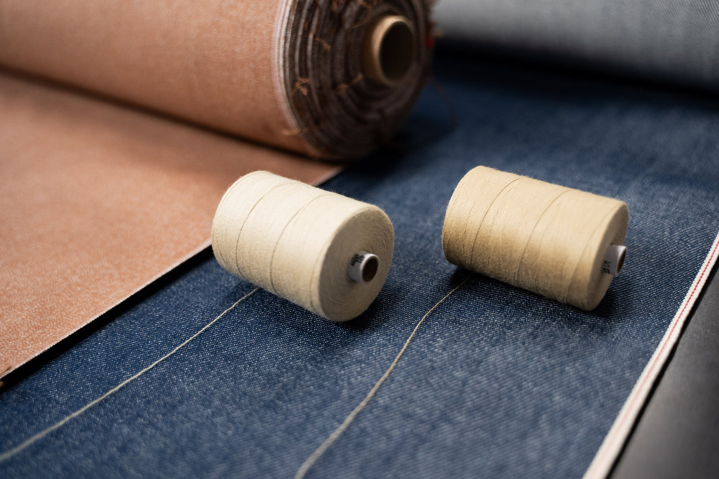 Enthalten ist ein 12 oz Antique Blue Selvage Denim von Kuroki, robust und langlebig, sowie ein 8 oz Broken Twill von Nihon Menpu für Taschen und Innenverarbeitungen.