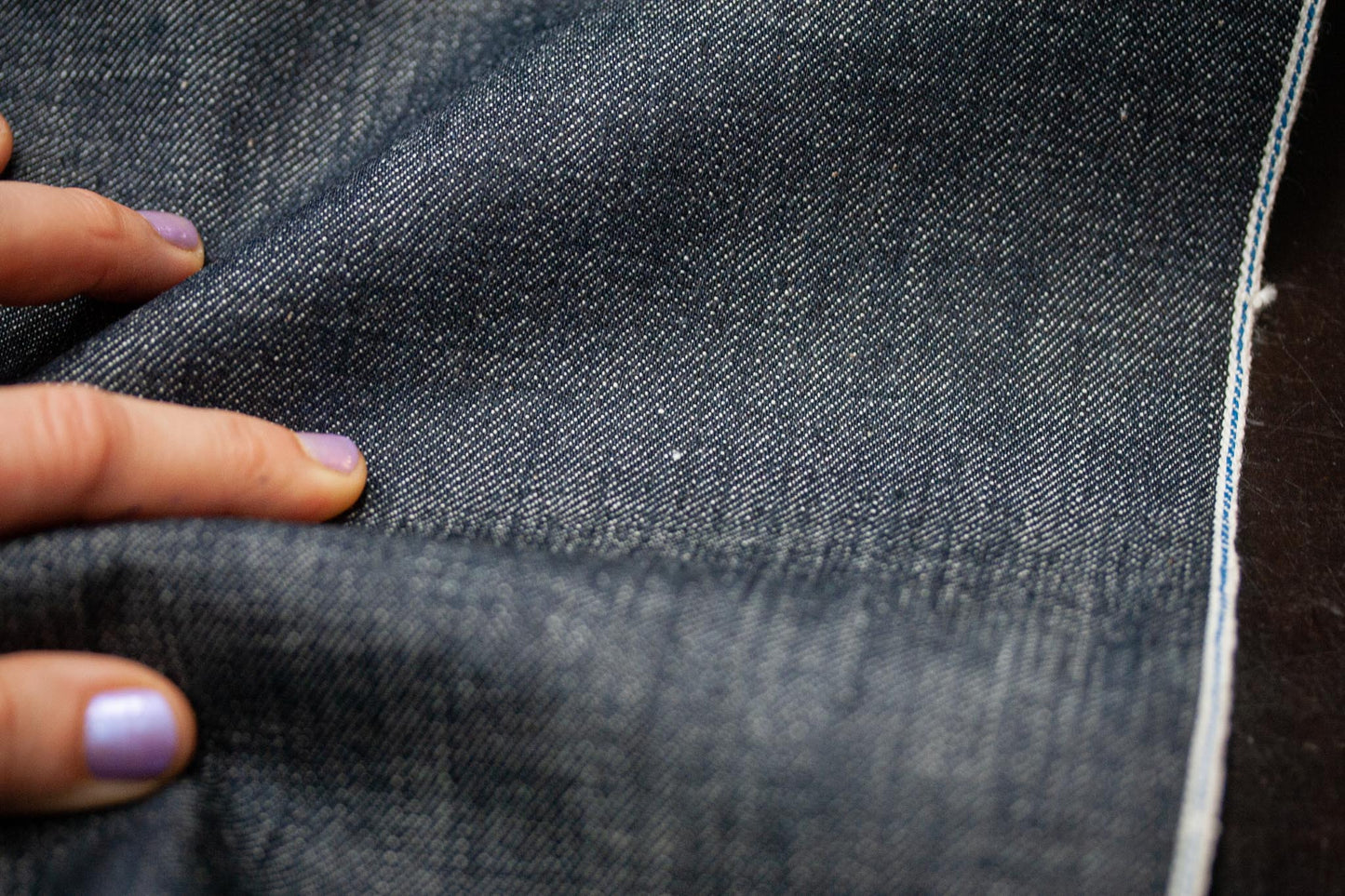 Bitte waschen Sie den Denim nicht vor der Verarbeitung. Als ungewaschener "raw selvage" entwickelt das Gewebe seine charakteristische Struktur und Passform erst durch das Tragen.