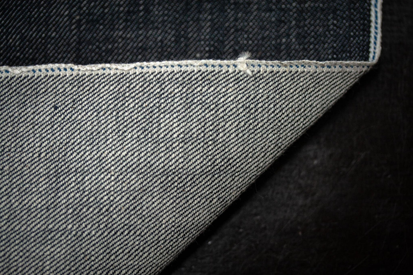 Dieser 13 oz Selvage Denim aus Japan wird von Kuroki in Okayama gefertigt und besitzt eine etwas ausgeprägtere Struktur, die dem Stoff eine lebendige, charaktervolle Oberfläche verleiht. Trotz der stärkeren Textur wirkt das Gesamtbild ausgewogen und hochwertig.